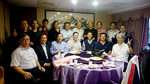 本系第一屆系友畢業40週年餐會於銀翼餐廳席開2桌,簡又新老師、馮朝剛老師、湯敬民主任、陳增源老師、牛仰堯老師與第一屆系友同歡話當年。